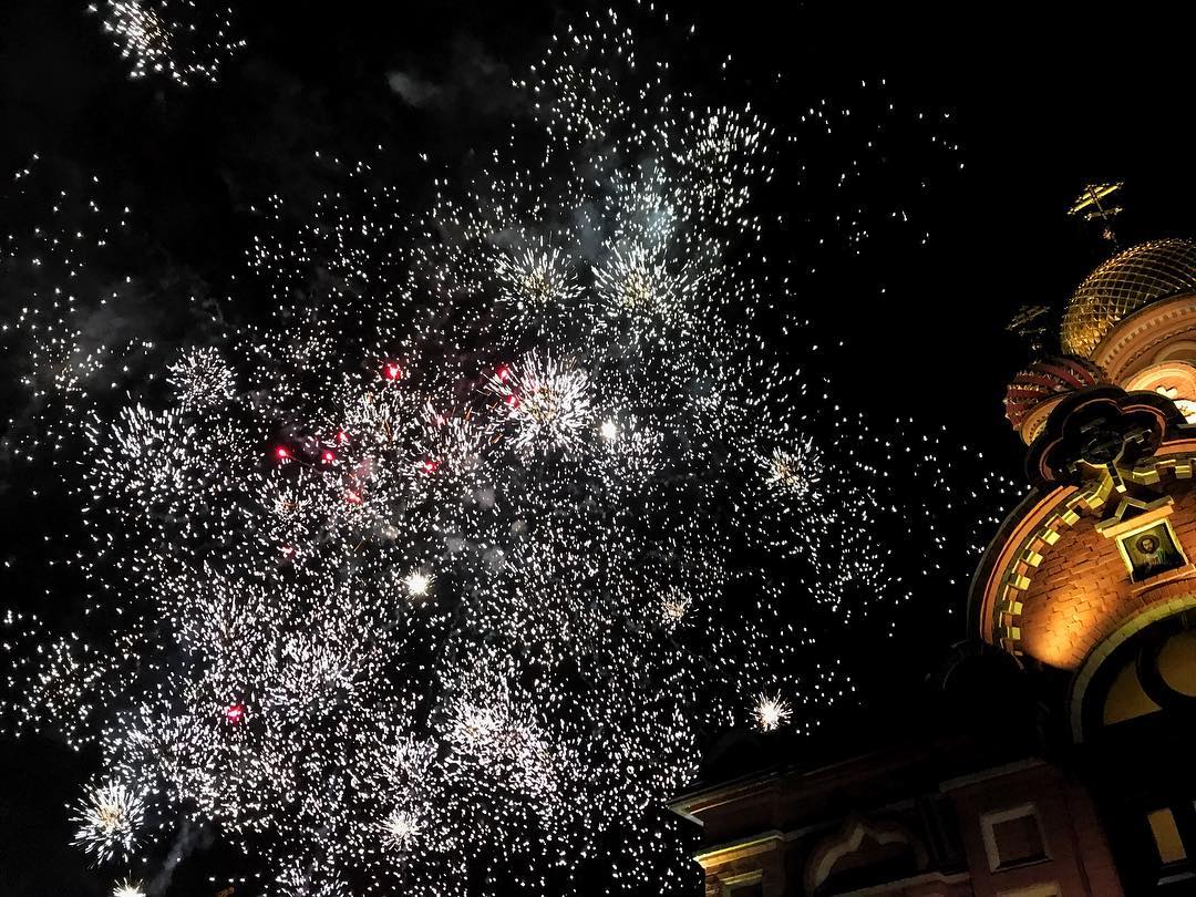 Вечером было отслужено всенощное бдение, а в 22.30 — утреня, по окончании которой была совершена Божественная литургия. После службы во дворе монастыря — рождественский салют.