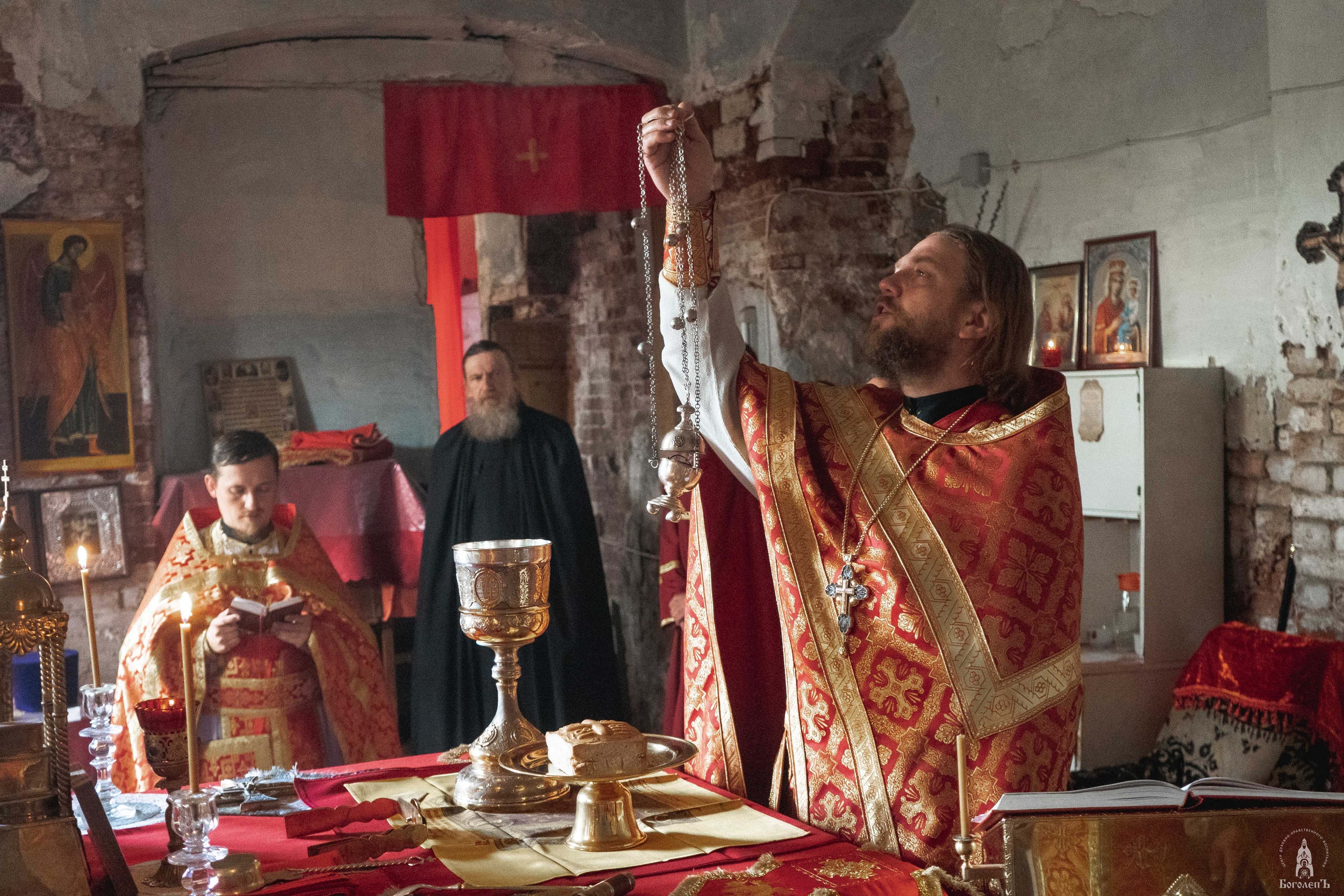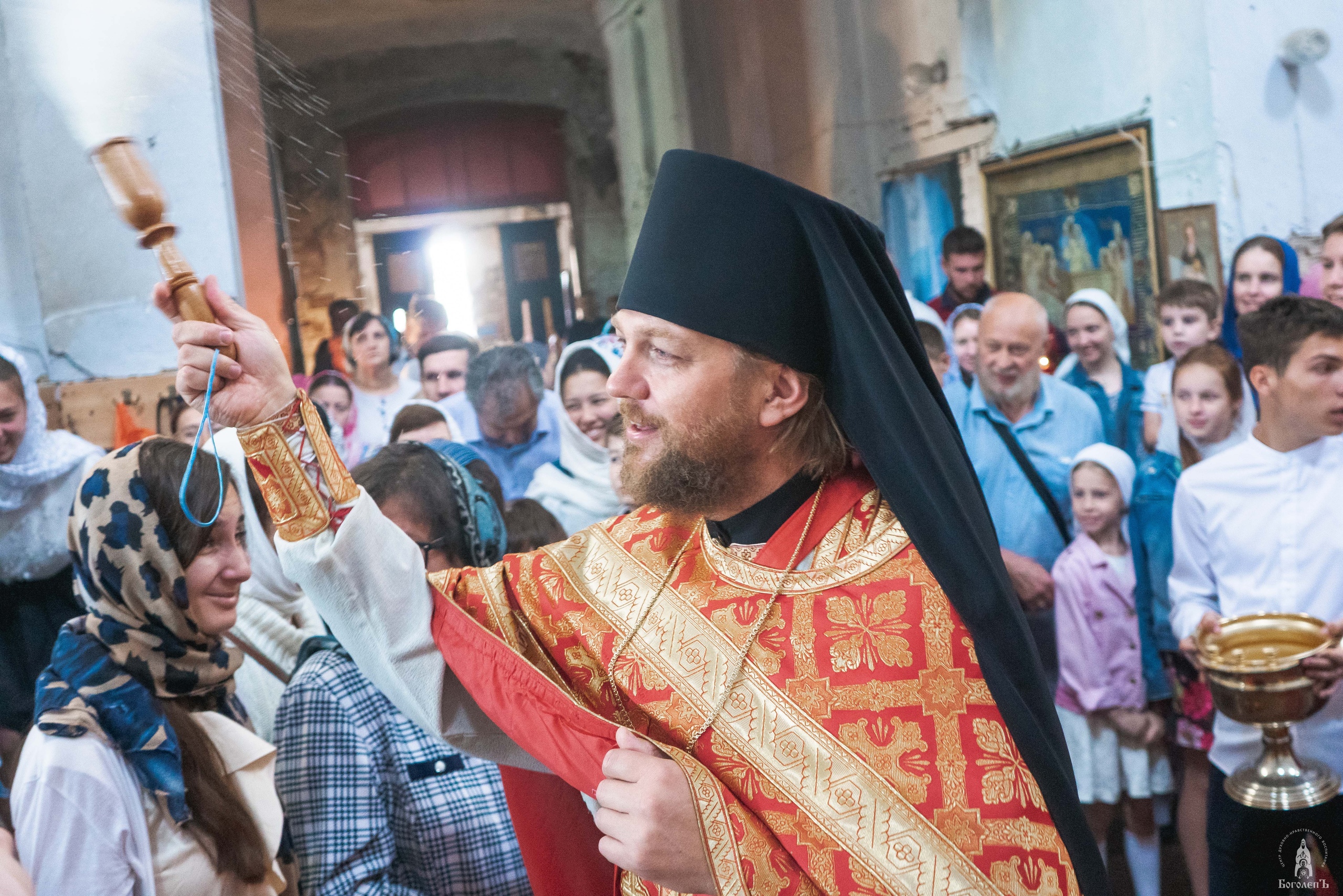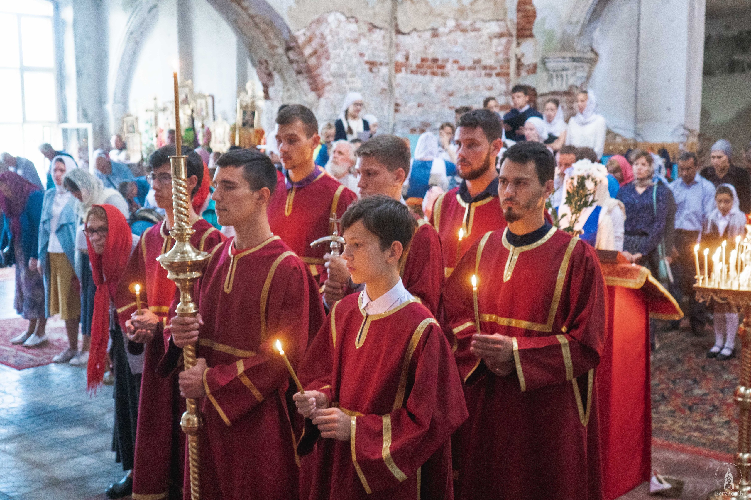 Крестный ход от Введенского храма до Иоанно-Предтеченского монастыря сопровождался Пасхальными песнопениями. Впереди колонны хоругвеносцы несли Образ святого преподобного Боголепа Черноярского и Астраханского.