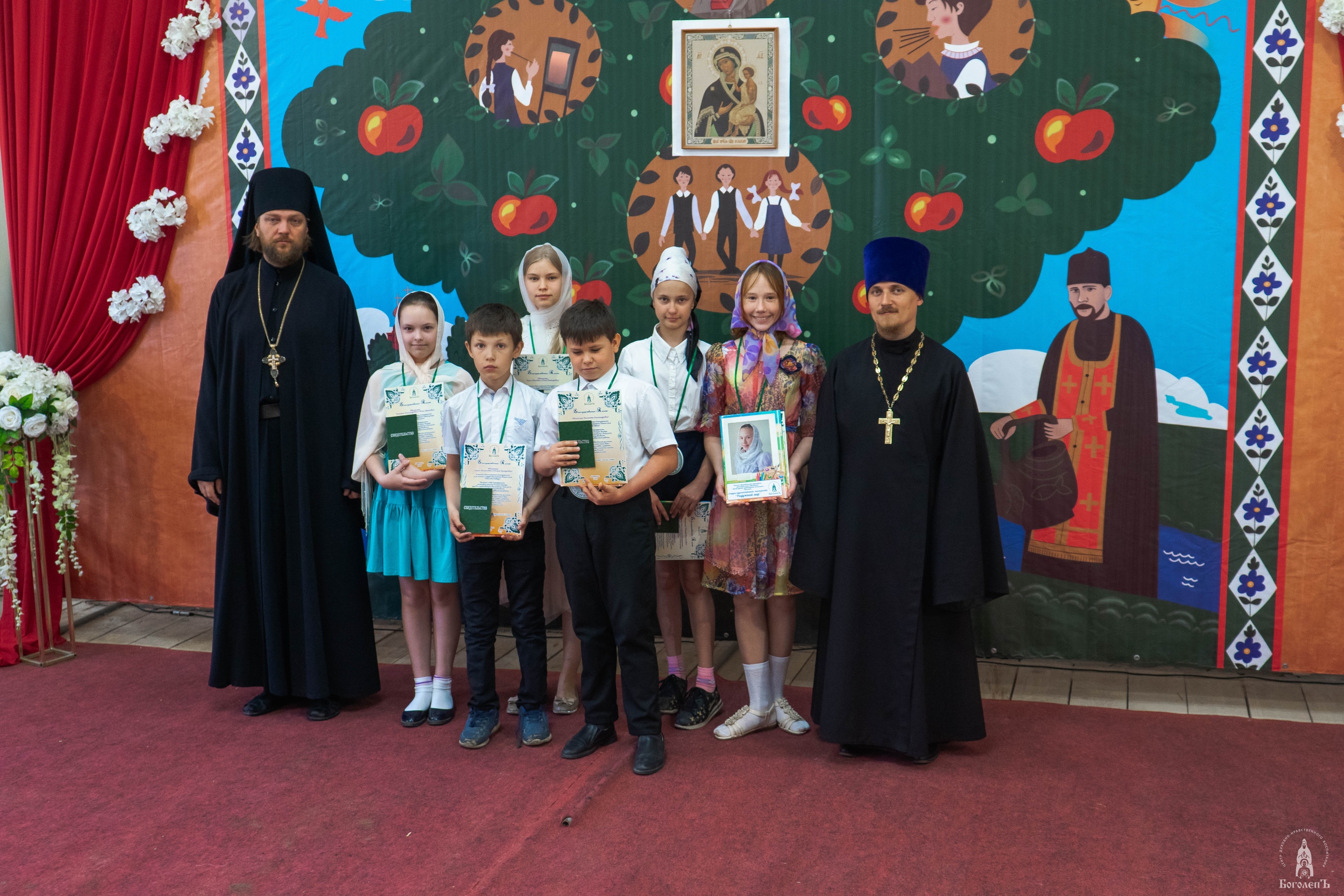 На торжественной линейке звучали поздравления с успешным окончанием учебного года и напутственные слова от духовника образовательных учреждений «БоголепЪ» и Воскресной школы игумена Петра, директоров иерея Алексия Спирина и иеромонаха Иринарха. Отличники были награждены Похвальными листами.